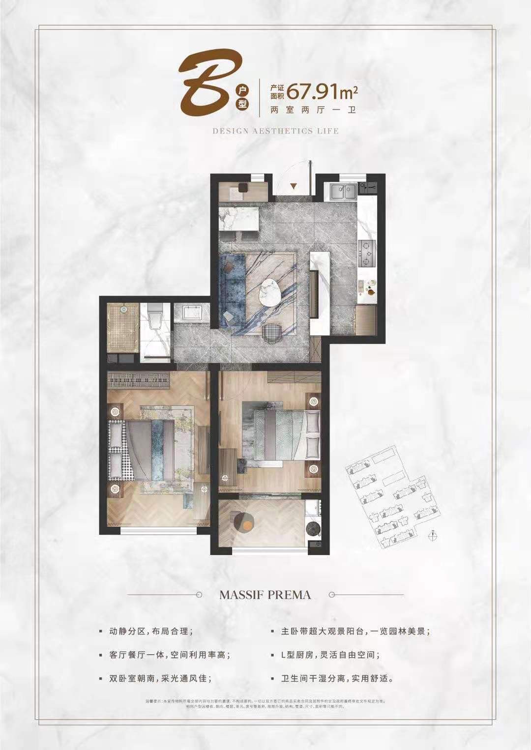 四、出售:在售花园洋房6-7层,以小户型为主,但实际空间使用率却非常高。户型面积:A户型 2室2厅2卫 产证面积:82.41㎡,B 户型 2室2厅1卫 产证面积:67.91㎡,C户型 2室2厅1卫 产证面积:59.69㎡,D户型1室2厅1卫 产证面积: 46.64㎡,E 户型2室2厅1卫 产证面积:57.14㎡,F户型1室2厅1卫 产证面积: 41.69㎡,单价:7.6-9.7万/平米,总价315-800万