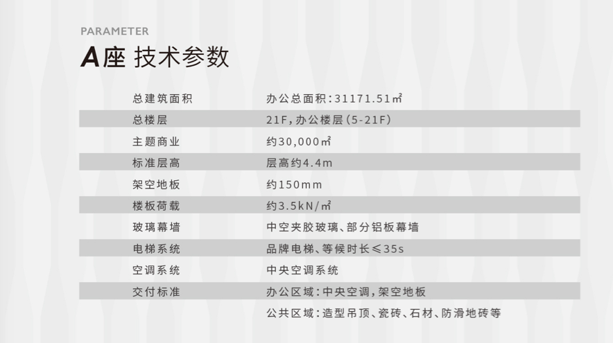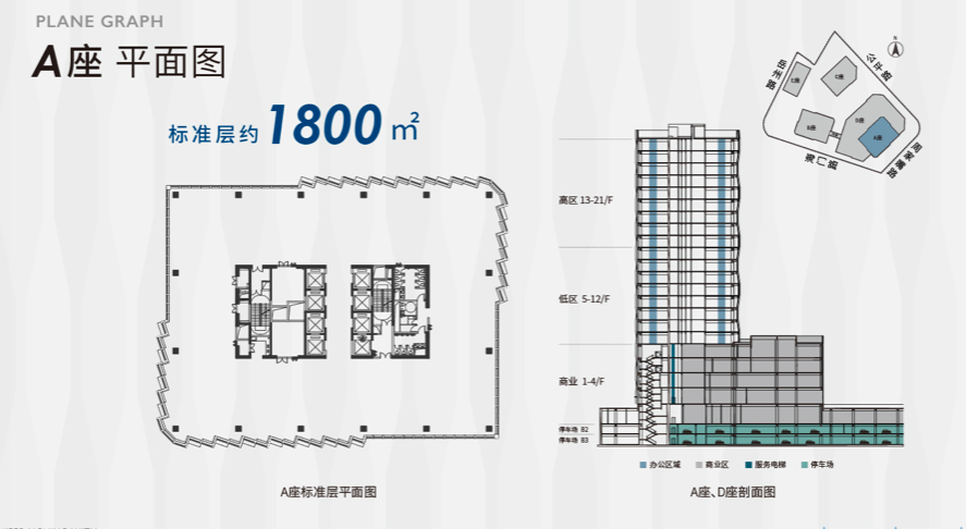 A栋(总高21层、17本产证),整栋面积:31171.51平米(办公5-21F),整层面积:约1833平米,售价7.5万/平米,整栋价格约23亿