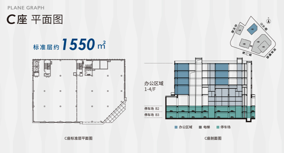 C栋(总高4层、4本产证)独栋办公面积5235.69平米,赠送约1000平屋顶花园,均价9万/平米,总价4.7亿