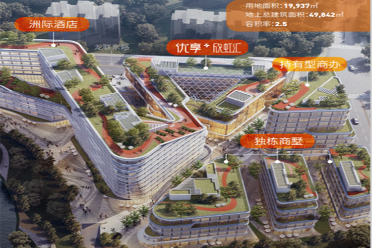 城开优享+欣虹汇由上实城开打造,是魔都首座以『第五立面+莫比乌斯环』为灵感的动线,奇妙链接[酒店+公寓+商业]的 沪上首座∞无限综合体。项目内2.4万方酒店集合了洲际酒店旗下两大全新品牌,客房总数330间;配套1.2万方商业,定位精致商务商业集群,以酒店、商业、办公将商旅与商务联动,为入驻企业和人群提供一个功能多元、场景融合的社交空间,集生态、人文、运动、节能环保、先进科技于一体,打造功能特色、健康环保、宜商宜旅宜居的高品质绿色商业社区。