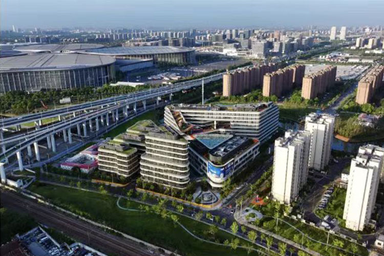 城开优享+欣虹汇项目位于虹桥商务区西北片,国家会展“四叶草”东北端,承载会展配套功能,打造片区会展会客厅之一,项目周边 3KM 已有较为成熟的商办、商业综合体配置,周边高架与快速路临立,项目临近的公园,环绕式规划绿地,蜿蜒流长的河道,打造互相渗透的园区微环境。巩固生活及商务配套功能,完善区域商业体系,丰富片区产业体系,进一步提升商务办公总部集聚功能,塑造虹桥的新名片。