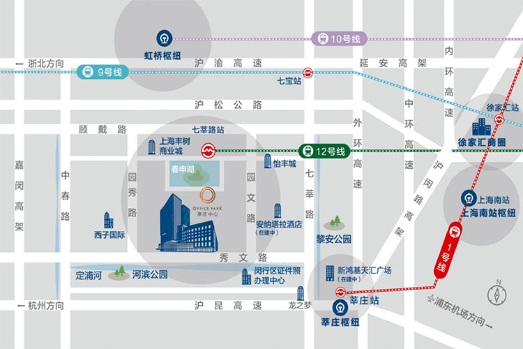 距离12号线七莘路站约1公里,未来这里还有嘉闵线在这里交汇。距离立交桥莘庄立交1.5公里,从莘庄立交可以与外环线、沪闵路高架等快速道路相连贯穿全城,通往浦东机场的距离也仅仅在40公里左右。通过嘉闵高架可以通京沪、沪昆、沪渝、沪翔、申嘉湖高速五大连接外省的交通动脉,快速通达江苏和浙江。