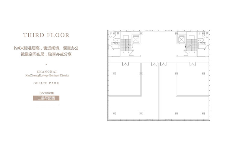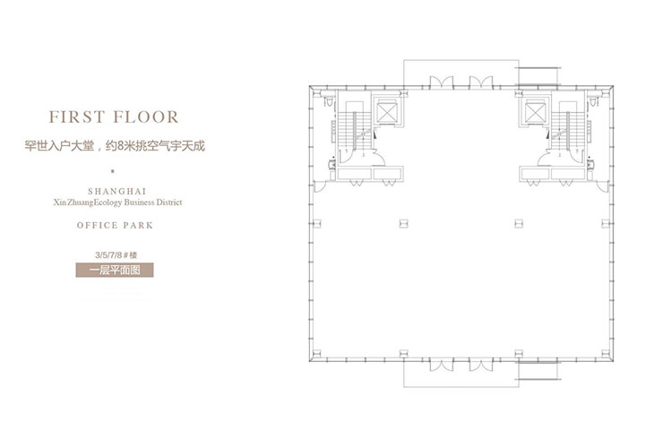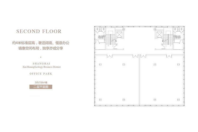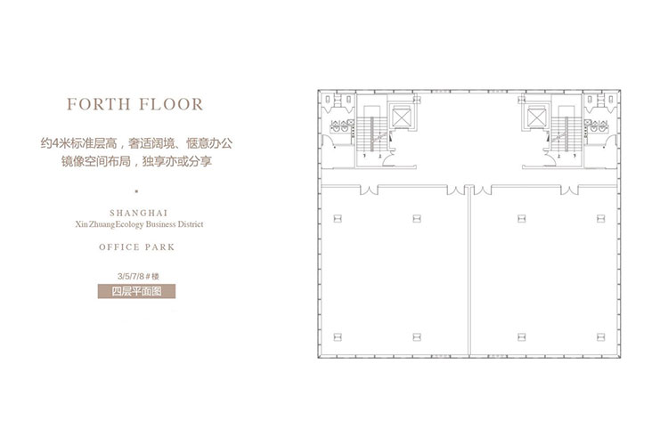 低密绿色办公,共4层,一层大堂挑高8米,二、三、四层层高4米,屋顶3.6米,建筑面积:2363.62㎡,报价3.9万/平,总价:9200万