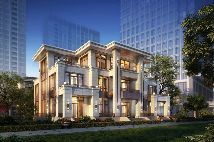 12席海派商邸企业公馆,地上三层,地下一层,9米挑高,燃气入户,独立花园,屋顶露台,专属车位,独立电梯入户,建筑面积900-1300平米(已售)