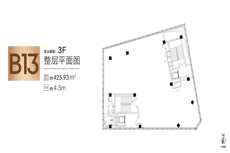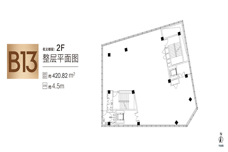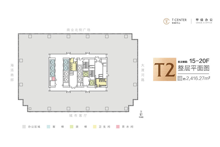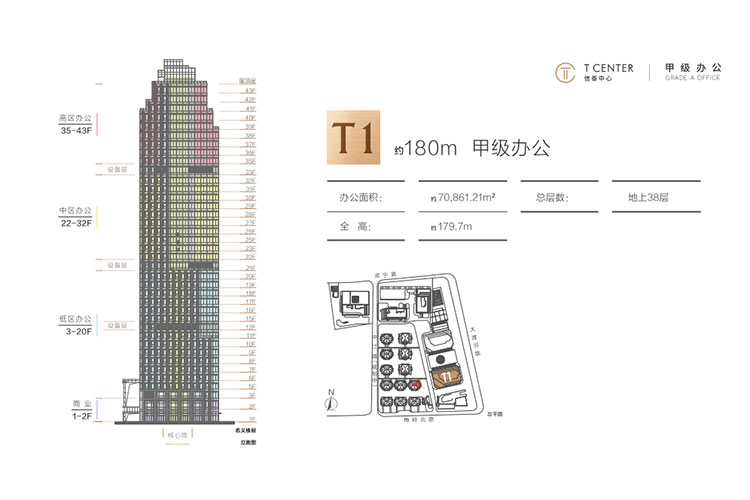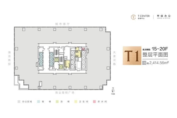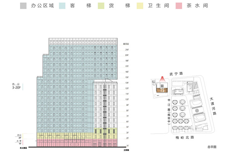 共20层,建筑面积20603平米,大堂层高5.5米(局部挑空10米),标准层层高4米,标准层1001-1449平米,报价4.5万/平米