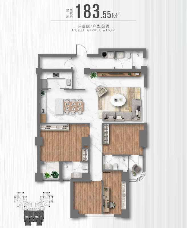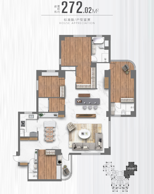 四、出售:不限购总裁行政公馆现房,总高26层,三梯四户,层高2.8米,奢华大平私宅、享配独立入户会客厅、住宅设计明厨明卫、双阳台,阔绰客厅超10米面宽,270度采光全明户型,每户有附赠20平,高得房率近80%,户型面积约183-272平方米,总价约1190~1890万