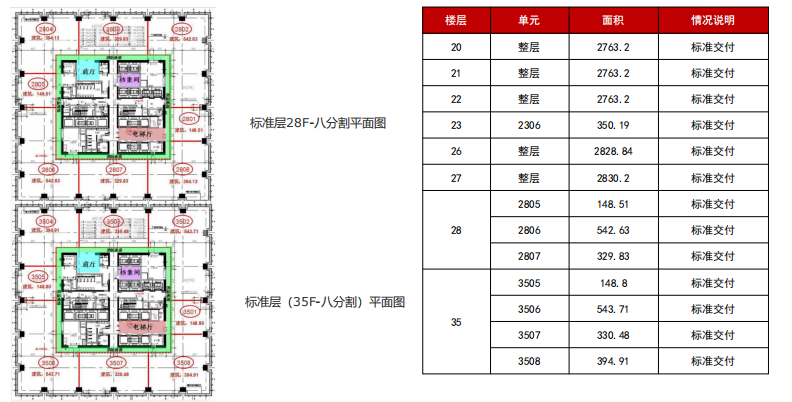 四、出租:面积:148-2828平,租金8.5-9.5 元/㎡/天,物业管理费:33元/㎡/月,净层高2.8米,电梯26部客梯,停车位约 746个,车位费1500/月,VAV空调系统