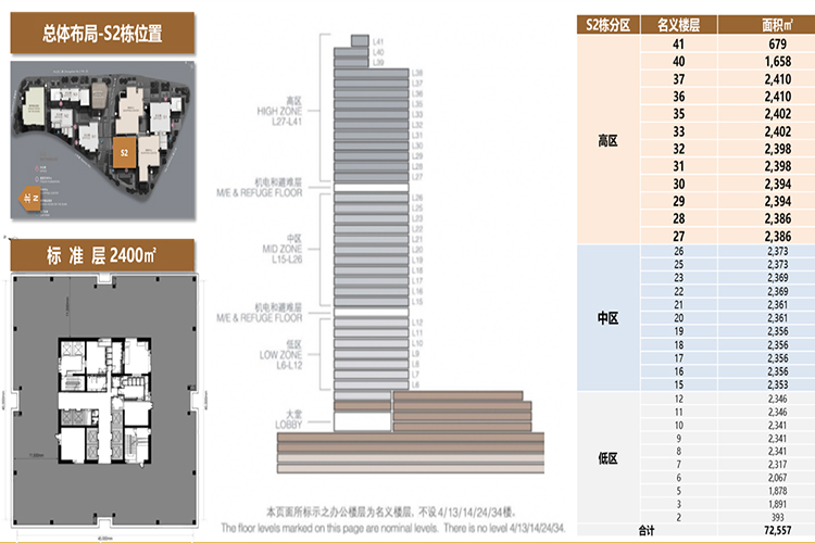 S2栋高度180米,共计11席,独立入户大堂和私人管家服务。在售楼层27-41层,户均面积2400平米,40层1658平、41层678平,单价16.3万/平米起,总价1.5亿-5.1亿左右
