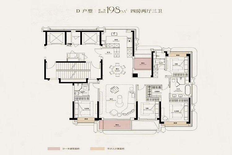 5栋24-31层高层住宅,类一梯一户,建筑面积130、166、172、200、240平米,单价14万-19万/平, 总价1850万-3300万区间
