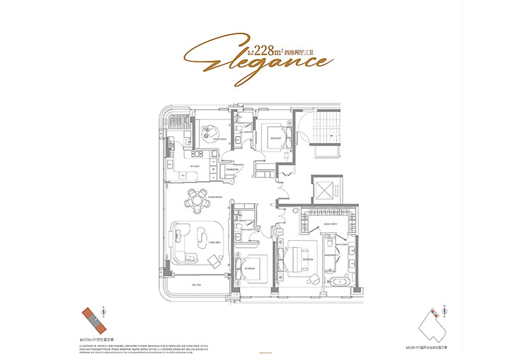 228㎡:独立电梯厅约7.5㎡,双玄关+储藏间,约270°环幕边厅(高区直面陆家嘴天际线+黄浦江),客餐厅+阳台近53㎡,主卧套房约50㎡