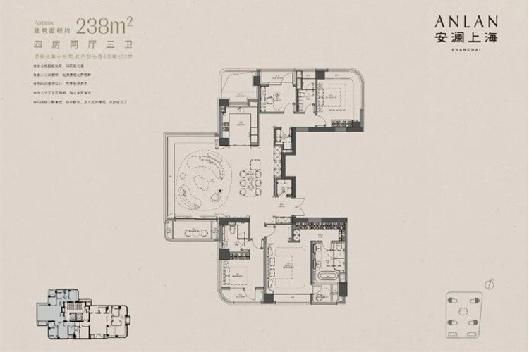 安澜上海由中海地产、招商蛇口、徐汇城投、中旅投资四大国企联合开发,2025年9月以439.5亿创全国涉宅用地总价纪录。是上海首个全地块4米抬板项目,重构"上居下商"立体生活系统,住宅约26万方+商业约3万方+配套8000平米。西地块南北楼间距最大可达约70米,东西双地块各设约5500平会所,约3万方"东安不夜巷"主题商业,立体景观绿化营造"森林溪谷"意境,充满生机与活力的自然生态社区。