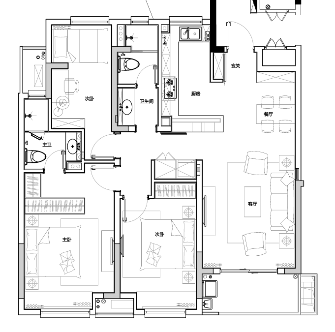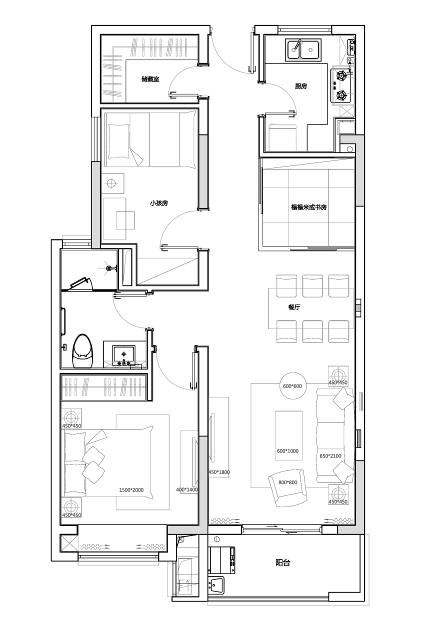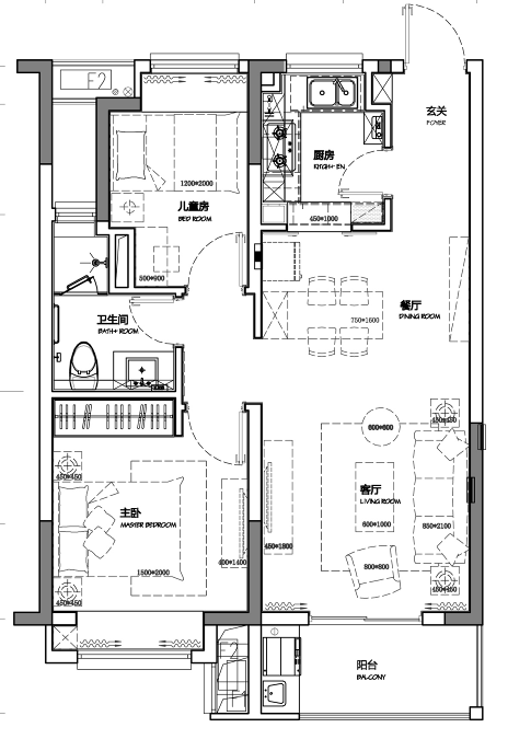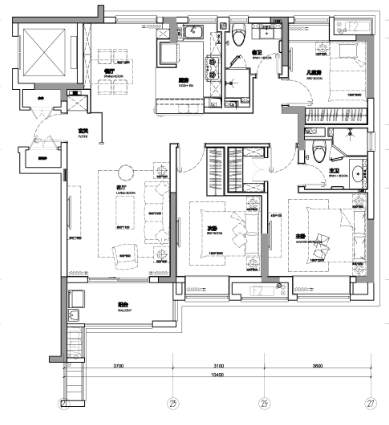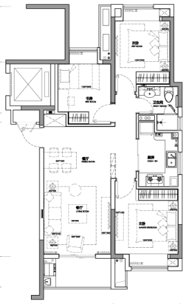 105㎡三房两厅两卫.三开间面南设计,保证全天充分采光