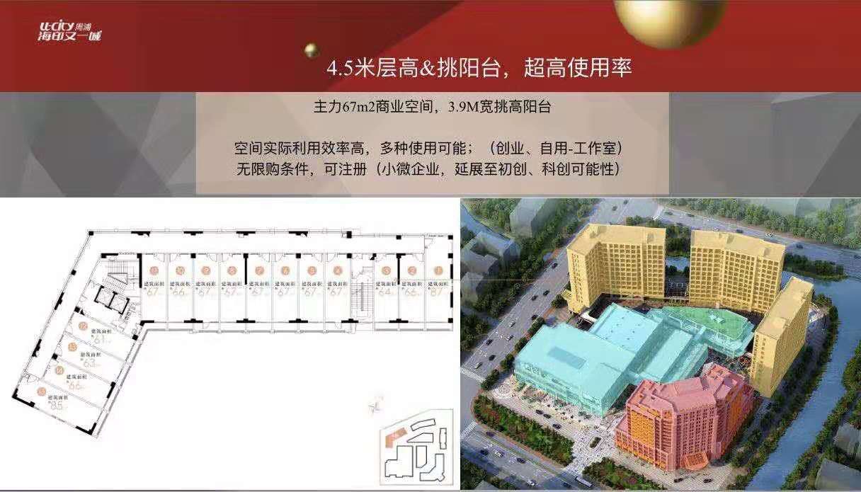 三、楼盘:海印又一城城市商业综合体由500强的海印集团,打造28座商业建筑,精心服务城市菁英! 项目占地近3万㎡,总建筑面积超14万㎡,分为三大部分:大型自持经营商业体、精品酒店及小面积带阳台的商业公寓。集休闲购物、餐饮娱乐,城市健康及生活社交于一体。目前推售的4栋40号楼,总共13层,1-2层为开发商自持统一经营的商铺,3-13层为层高4.5米的商业公寓, 主力面积为67平方左右。规划设计采用户户朝南或东南的单边走廊设计,使户型南北通透,空气对流,采光充足,宽敞阳光走廊(约2.2-3米宽),户户带阳台。