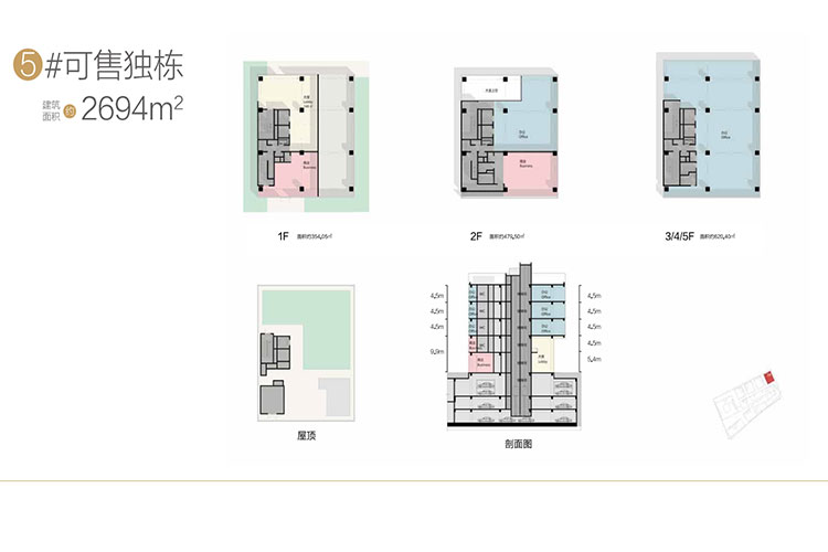 在售6栋(7个单元)独栋,地上5层,每层1本产证。1~2层可通燃气。大堂局部挑高9.9米,首层5.4米层高,一楼是店铺性质,可通燃气,可做员工食堂、企业会所宴请会客的用途,也可以对外出租,带燃气的商铺租金高收益好。二至五层4.5米层高,较高的层高给予您气派的办公环境。每个独栋都配备了2台电梯,等待时间短,效率办公。屋顶具备活动区,电梯直达屋顶花园,屋顶的玻璃幕墙高2.9米,可冠名做企业公馆总部