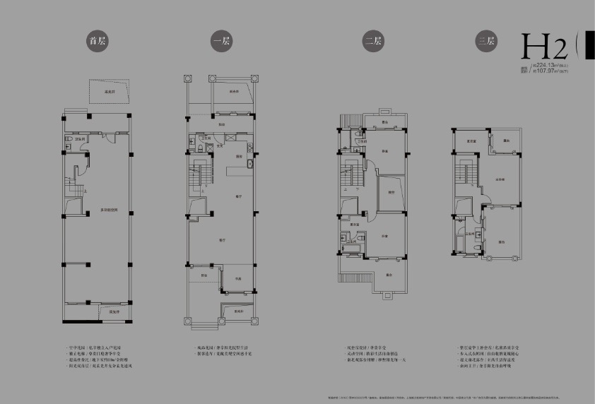 二期在售联排和双拼别墅总量69套,每套带独立电梯,别墅190平--340平米,附赠地下室110-190平米,联排别墅均价74000元。总价1500万-2500万