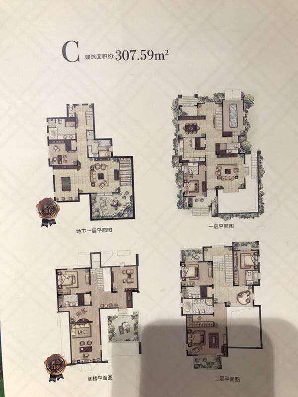 在售花园联排:224-228平,花园100-150平,赠送120-150平米,实得350-380平米,总价850万左右,