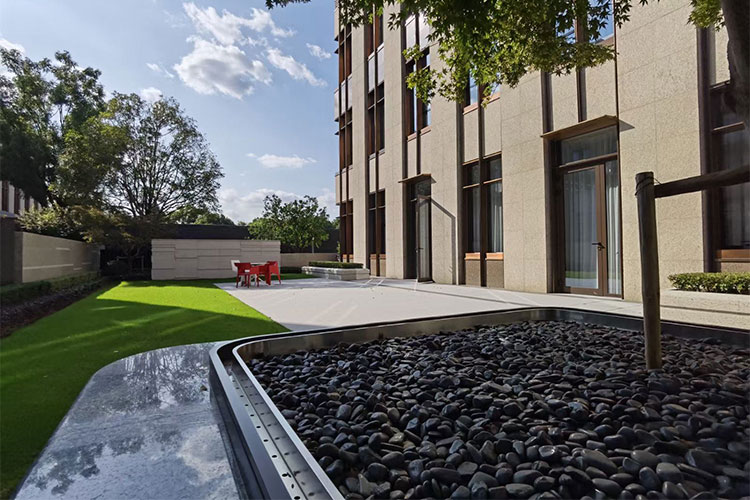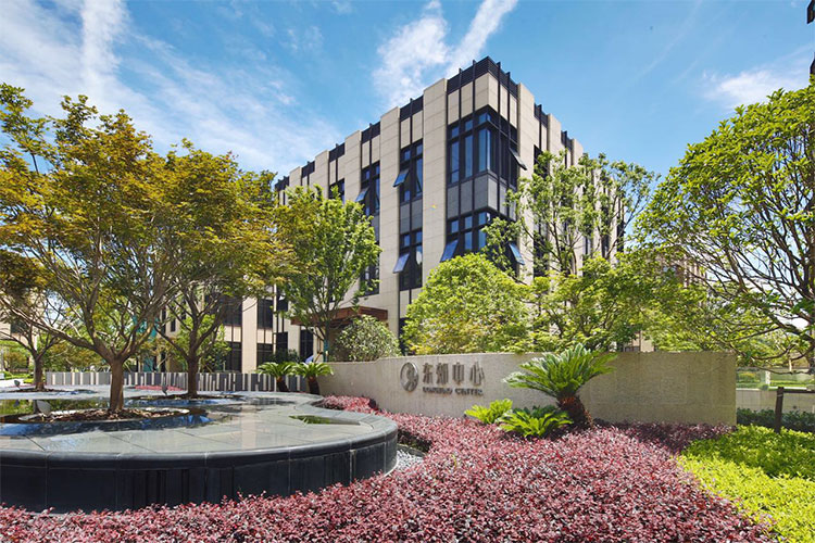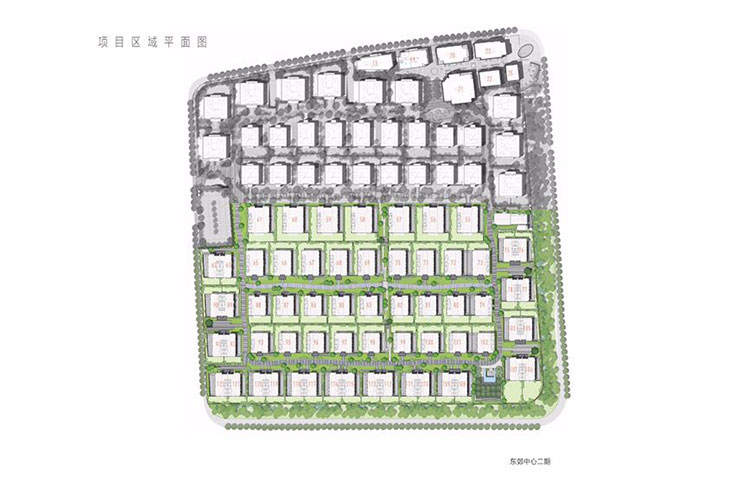 东郊中心项目占地面积为11万方,总建面15万方,综合容积率不到1.0。规划上采取全地下开挖,在满足用户车位需求同时,实现完全人车分流。建筑物之间南北间距达到18-22米,东西间距在10米以上,布局上努力将地面空间让于绿化环境营造。项目产品形态上规划设计了78栋,独立及双拼花园办公,单栋面积分布在750—1500平方米之间,建筑单体统一为地上三层地下一层。设计上充分体现了花园办公的特色,4.5—4.8米的层高优势,大面积无柱网的室内自由空间,每栋独立的电梯和地下入户大堂。建筑同时设计有大采光面的下沉庭院和空中屋顶花园,将高绿化率办公产品与东郊国宾别墅板块的生态概念结合。