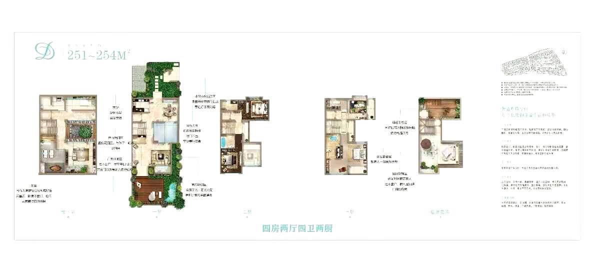 四、销售:在售嘉涛湾联排别墅全部是现房发售,现房实景,别墅地上3层,地下1层,全明地下室,带花园,露台,户型面积:240、252、363、383平米,花园:40-150平米,均价3.6万/平米,总价855-1500万