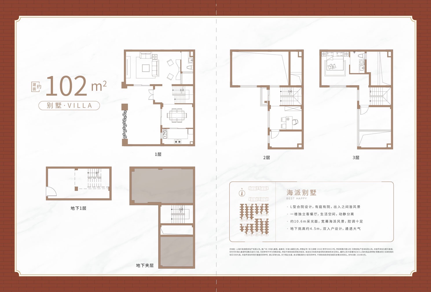 四、销售:在售合院联排别墅,地面三层,地下一层,户型面积:90平、102平、106平米,赠:花园约26平,露台约16平,地下室层高5.4米可做两层,均价:5万/平米,总价:470-570万左右