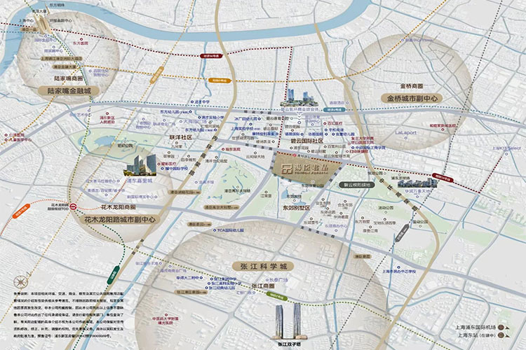 项目双轨交汇,紧邻地铁 14 号线黄杨路站,9 号线蓝天路站,3 站即达陆家嘴;自驾约2km 直上内环、中环高架等城市主干道环伺,轻松抵达全城核心商圈。