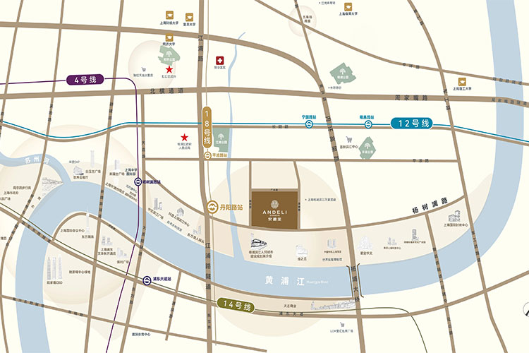 安德里项目地处杨浦滨江南段CAZ(中央活动区),与外滩、陆家嘴共同构成“黄金三角”,距黄浦江仅约300米,占据内环内稀缺滨江资源。周边集聚美团、B站、抖音等头部企业,片区数字经济产业规模超3000亿元,导入约20万高知人群。步行可达国际时尚中心和在建的43万方超极合生汇综合体,毗邻北外滩来福士、瑞虹天地等大型商业综合体。