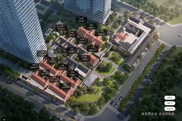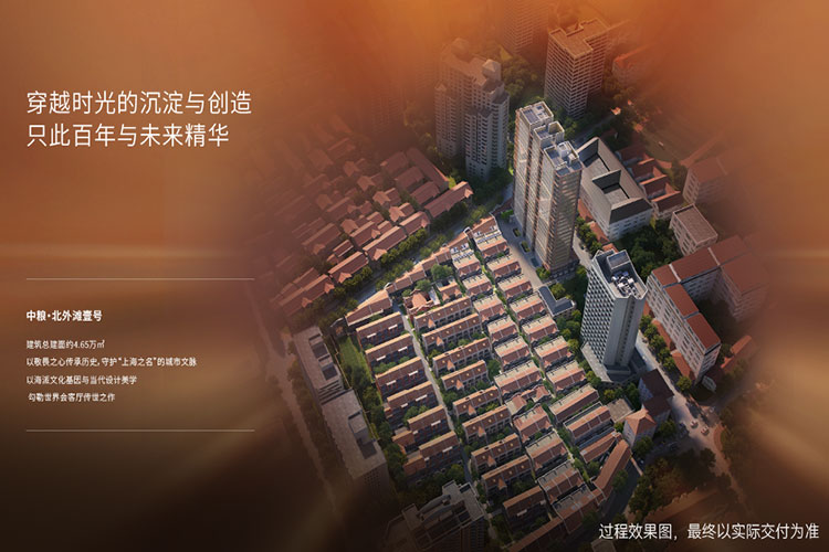 中粮·北外滩壹号由央企中粮集团开发,作为中粮大悦城上海第五座壹号系高端产品线,占地2.38万方,容积率1.95,建筑总面积约4.65万方,整个社区仅208户,纯粹低密,由90席天际大平层住宅和118席海派风貌别墅组成。建筑设计:高层采用仿红砖陶板+白色石材窗板+古铜色金属线条,别墅复刻石库门韵味,融合西洋新古典主义与Art Deco风格,放大窗墙比与院落尺度。景观园林串联八大映象典藏场景,营造"建筑可阅读、城市可漫步"的归家仪式感。会所配套约1800平海派高奢立体景观会所,含恒温泳池、健身瑜伽、私宴厅、茶室、酒吧、舞蹈录音室、阅读空间等功能,满足生活需要。