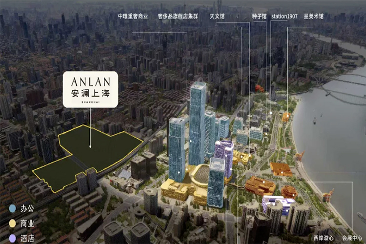 安澜上海由中海地产、招商蛇口、徐汇城投、中旅投资四大国企联合开发,2025年9月以439.5亿创全国涉宅用地总价纪录。是上海首个全地块4米抬板项目,重构"上居下商"立体生活系统,住宅约26万方+商业约3万方+配套8000平米。西地块南北楼间距最大可达约70米,东西双地块各设约5500平会所,约3万方"东安不夜巷"主题商业,立体景观绿化营造"森林溪谷"意境,充满生机与活力的自然生态社区。